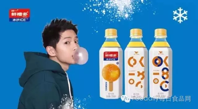 5月13日,统一鲜橙多新品发布会火热召开,国民老公宋仲基莅临现场,两款新品——“橙PLUS柠”与“冰沙ICE”新鲜亮相。“冰沙ICE”作为首次亮相的新品,天猫预售,产品单价6元/瓶。在口感上,“冰沙ICE”浓度比例为20%,冰冻之后变冰沙,口感更为清爽。采用冷冻香气技术,通过绝妙的糖酸比调配,口感丰富,冰冻口感更好喝;在包装上,冰沙ICE饮料的新奇之处在于,其背面设计采用特殊耐热抗负压瓶,温控变色的油墨标签技术,产品在8摄氏度以下时,局部会产生“白变蓝”效果;技术上,冰沙ICE饮料独特的充填工艺,创造瓶内最适合的负压空间,-8℃符合产品液体变固体所需的最佳温度要求,此设计即向消费者传达冷冻变冰沙的神奇属性。