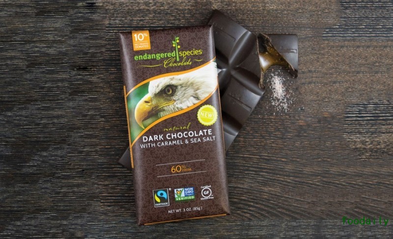 Endangered Species 巧克力,公司每年将纯利润的10%捐赠给野生动物保护组织,最近推出了全新风味的产品:焦糖海盐黑巧克力。产品包装上有一个美国白头鹰的头像,该产品包含有机焦糖和粉红喜马拉雅海盐。这款“白头鹰巧克力棒”获得国际公平交易认证,非转基因认证,并且不含谷蛋白。