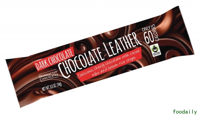 Dark Chocolate Leather包含纯黑巧克力,可可粒、糙米片,为我们带来了这款极具咀嚼感的零食,无乳且无大豆。Dark Chocolate Leather产品用非转基因原料制成,在全美范围都有销售。