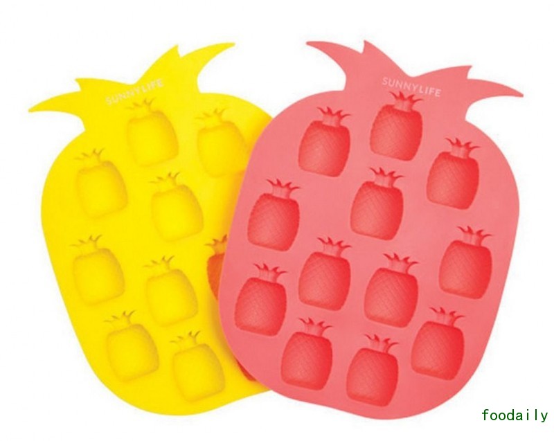 冰格设计中较为常见的做法是设计一些可爱的模具,比如机器猫、象棋、钻石。而这款菠萝形状的冰块则可以印上 12 块小的冰菠萝,每一块都带有交叉纹路,形成自然的深浅变化,就像一个个小的冰雕。硅胶做的模具有多种颜色选择,售价 17 美元,这里是购买链接。