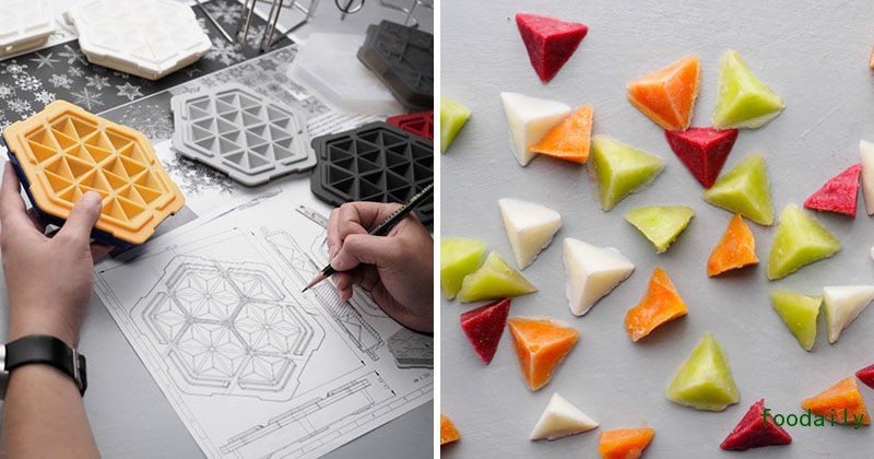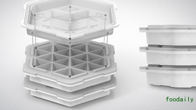 这是美国的团队 THAT! 设计的速冻盒,它有一个类似雪花的结构。每一个小的格子都是一个三角体,可以在 10 分钟内结成冰块并快速融化,非常实用。它甚至可以速冻巧克力、水果、咖啡,引起人们制作甜品的欲望。产品刚刚完成众筹,单个售价 18 美元,预计今年上市。