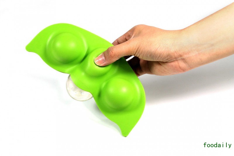 这款豌豆荚的冰格算是冰格设计中最经典的一种,它也是用硅胶做的。从缝隙中装进水后冻住三到五个球形冰块,通过挤压将冰块掉进水杯中,就像剥豌豆一样。球形冰块的溶解速度要慢于方形冰块,而这种有互动的设计也增加了生活的趣味。此外,它还有方便旅行时携带的特征。售价 10 英镑,可以英国电商网站 Suck UK 上购买。