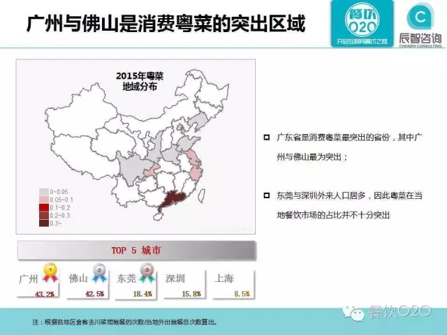 10、广州和佛山是粤菜重点消费区域,东莞和深圳外来人口居多,就排在佛山后面,上海也是比较喜欢吃粤菜的,这是中国五大消费粤菜的城市。