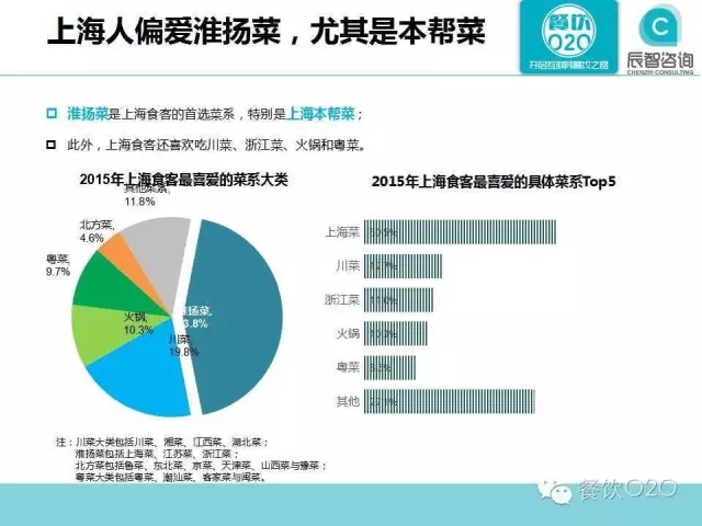 12、上海偏淮阳菜、本帮菜,占到30%,排第一,然后是川菜和浙江菜占第二位。