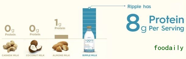 相反,Ripple蛋白质含量是杏仁奶的8倍。