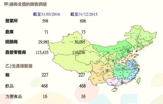 统一稍晚些时候才到内地开拓市场,它在修建工厂方面要比康师傅保守。直到现在也只有30多家生产基地,是康师傅的1/3。