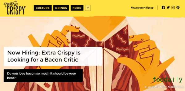 为了增加网站知名度,Extra Crispy 将会对即将在布鲁克林举行的 CoffeeCon 进行赞助。此外他们还将与评论家展开合作,对全美的培根进行一次评选。所有参与的评论家都将进行为期 3个月的研究调查,并撰写全美各地培根的优缺点,以选出“America’s Best Bacon.”(全美最佳培根)的头衔。这项活动的报名截止日期是6月23日。