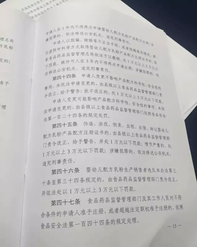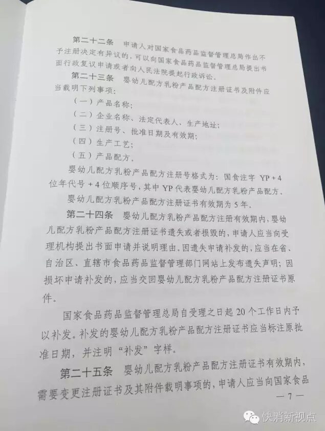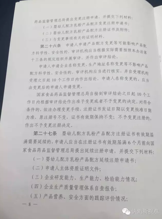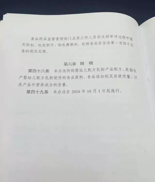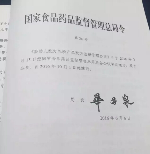 按照新修订食品安全法要求,在广泛征求意见基础上,2016年6月6日,国家食品药品监督管理总局颁布了《婴幼儿配方乳粉产品配方注册和管理办法》(国家食品药品监督管理总局令第26号,以下简称《办法》,办法共6章49条,将于2016年10月1日起施行。
