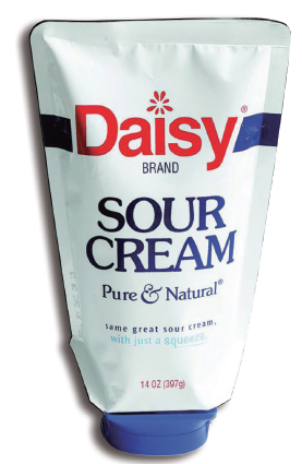 挤压式立式软包装袋为酸奶油的食用提供方便。