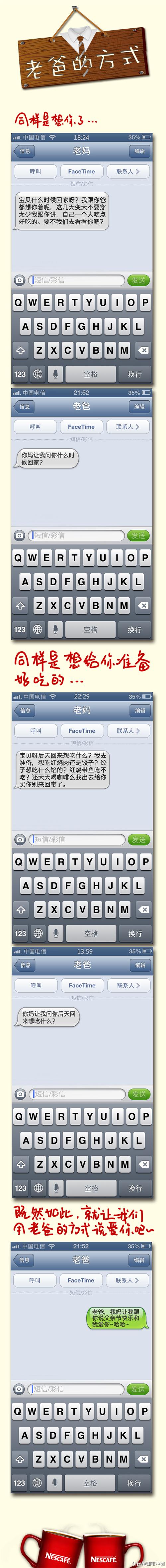 不是所有的“敢表达”都要当面说出来,不是所有的“我爱你”都要让全世界知道。这个父亲节,用他的方式来表达,发条短信轻声问候:爸爸,这些年,辛苦你了!