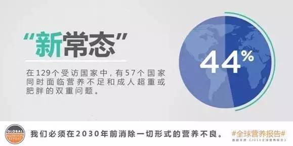 我们习惯以为营养不良仅发生在最为落后的国家和地区。《2016全球营养报告》发现,全球近半数国家都受到包括营养摄入不足和肥胖在内等各种形式的营养不良的影响。我们需要携手积极应对,不要让营养不良成为我们生活中的“新常态”。