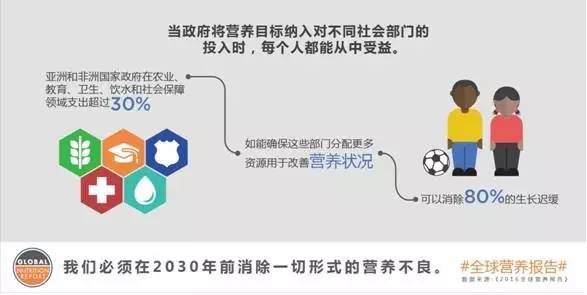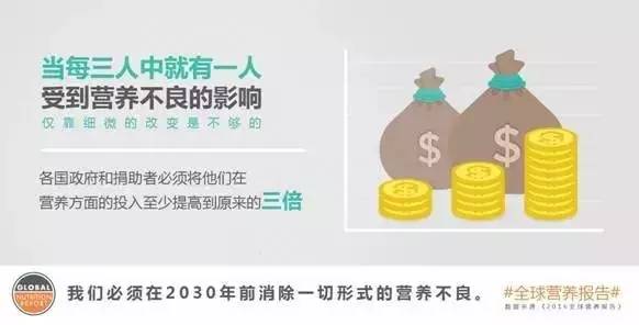 全世界每三人中就有一人受到营养摄入不均的影响。最新发布的《2016全球营养报告》指出,各国政府和国际捐赠者必须提高在改善营养上的经济投入,才能扭转这一趋势,在2030年前消除一切形式的营养不良。
