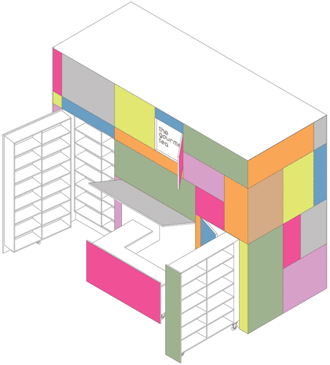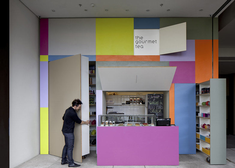 这家在巴西的茶吧外表看上去像是由方形色块拼出来的墙,卖茶的窗台和储藏茶具的柜子全都藏在其中。白天,依靠柜子下面的滑轮可将这些柜子全都拉出来,到了晚上打烊时,这里又恢复成了一面彩色的墙,就像是一个代表着欢乐和活力的城市雕塑。这种灵活改变的方式也使这里拥有街头小吃的特征,更能融入周围的环境。