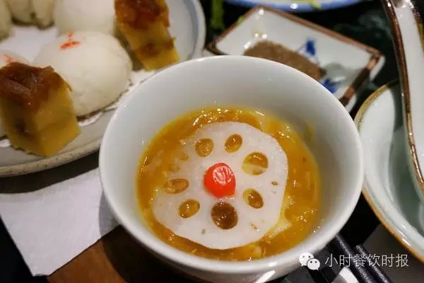 菜品也是格外地接地气。吃着吃着就会不由地回忆起小时候,似乎吃出了妈妈的味道。菜单上,酸梅汤、梨汤、白切鸡、老汤猪手、豆儿酱、焖酥鱼、干拌牛肉、盐水鸭胗、素火腿、酱油萝卜、葱烧海参、软炸虾肉、糟汁肉、北京烤鸭、胡萝卜炖牛肉、醋溜木须、辣爆里脊筋、炖酥丸子、炖排骨、豌豆糕、素煮饽饽、果子干儿……饮料、凉菜、热菜、小吃、甜品每一样都精致,菜品没有太多华丽的装饰,还原出了北京菜的质朴,而每一道菜需要的工序和用料,只有绝不偷工减料,才能呈现出过去天子脚下的臣民,对吃食的讲究。吃过“懂事儿”,那些老观念里认为北京菜太粗犷、单一、口味乏善可陈的误区,也该就此打住了。