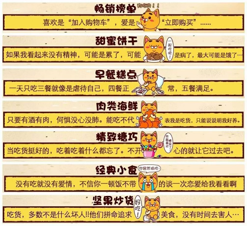 经营建议:可以顺势现在淘宝主推的内容影响趋势。网红、淘宝达人、淘宝头条、淘宝直播等等,找一些30岁左右的成功女性做网红,由他们在一些平台推荐新鲜的零食,以此来带动新爆款的出现。