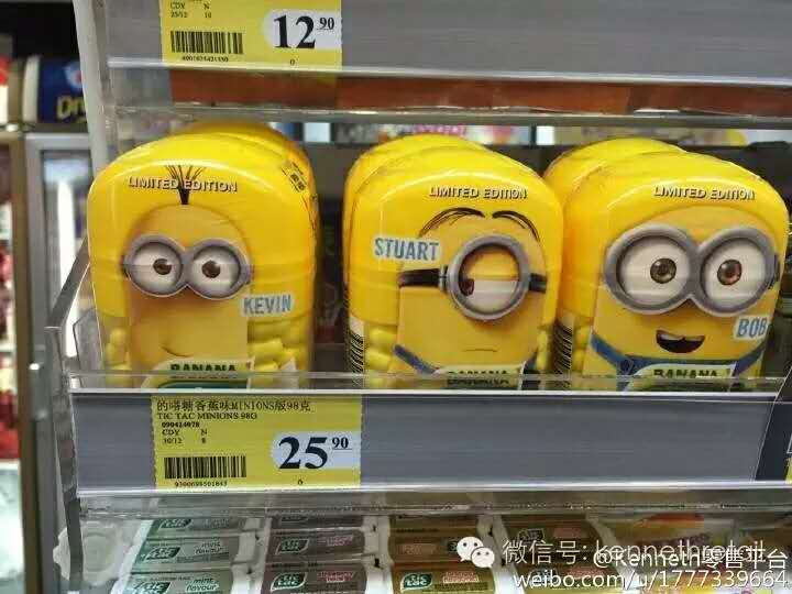 15年的时候,香港有出售这款小黄人设计的 tic tac 糖,据说非常受欢迎。