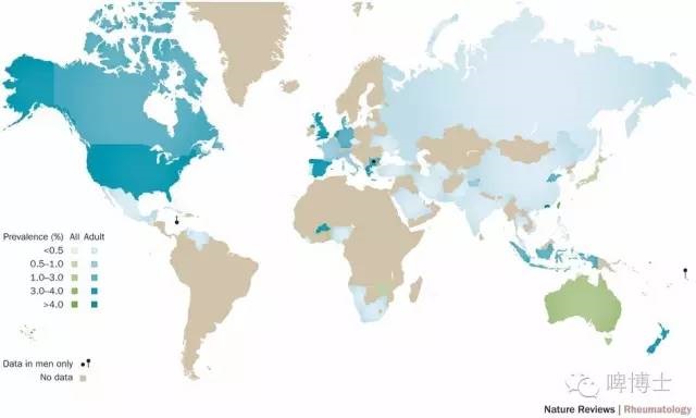 世界痛风发病率分布图