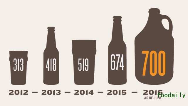 根据加州精酿联盟的数据显示,截至2016年6月,加州已经拥有超过700家精酿酒厂,达到历史巅峰。