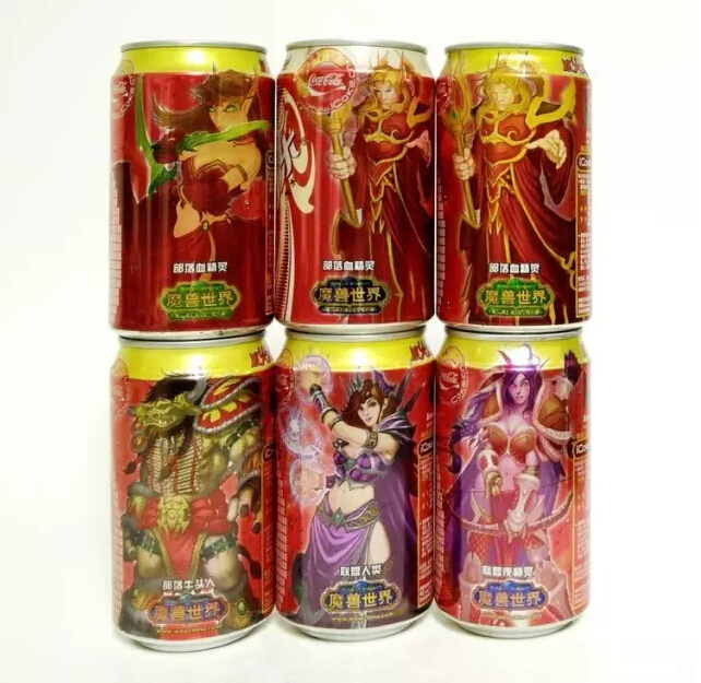 于是市场上可以看到,原本红白二色外观的可口可乐包装上出现了“绿皮兽人”、“人类法师”、“暗夜精灵”等魔兽世界经典形象。