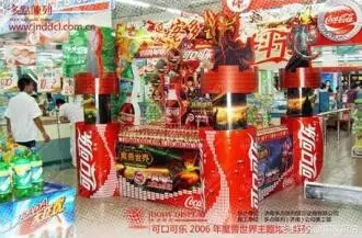 二者共同在网吧渠道建立和推广以“iCoke”为主题的生动化陈列活动,利用各自渠道资源和网络优势进行品牌宣传。当时可口可乐准备了5亿支带有魔兽人物的可口可乐饮料进行销售,并准备了4000万份奖品,投入2000万元进行全国路演,分A、B、C三挡装修了近20000家网吧。