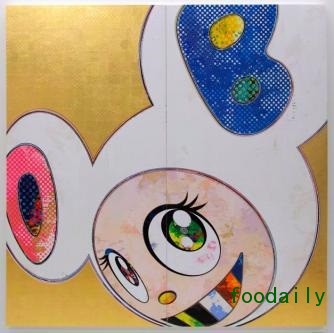 提及日本当代艺术家,除了奈良美智和草间弥生,另一个最常出现的名字是村上隆。他给自己作品的定义是“幼稚力”(childish)和“超扁平”(superflat)——“打动未泯的童心”,模糊东方与西方、高雅与流行、艺术与商业的分界。那些笑容灿烂的太阳花、牙齿尖锐的米老鼠 Mr. DOB、五颜六色的大眼水母,既可以陈列在美术馆里,被视为日本流行文化的提纯和讽刺,也可以印在 T 恤、背包、球鞋、手表上,成为潮流商品的标识。