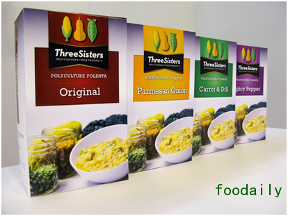 Three Sisters是从玉米,豆类和南瓜制成的即食玉米粥的品牌。这种混合粥有四种可供选择的口味,但是产品大部分来自种植在一起的这三种作物,它们相互支持,并维护土壤。这是在多作物栽培农业基础上建立的食品品牌。