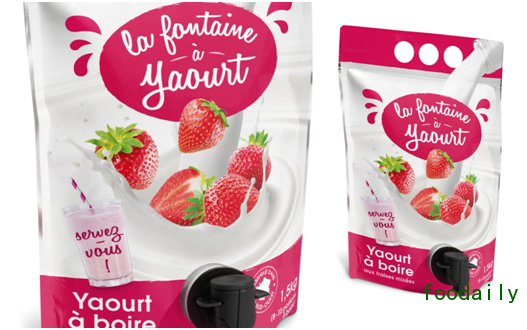 YéO’s La Fontaine à Yaourt由多种草莓制成,在法国生产。这种新型的1.5升的包装保证了开启后10天的贮藏寿命,实用、经济,同时也有利于环保——Pouch-Up袋的环境影响比普通的塑料瓶少40%。