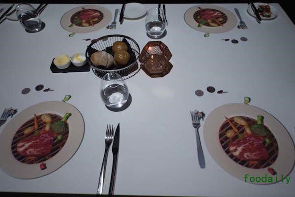体验被安排在外滩 22 号 NAPA 法餐厅,整个体验过程大约 1 个半小时,一共上了三道菜,三场餐桌秀。之所以管它叫裸眼 3D 秀,是因为整个过程中观众无需佩戴任何外部设备。
