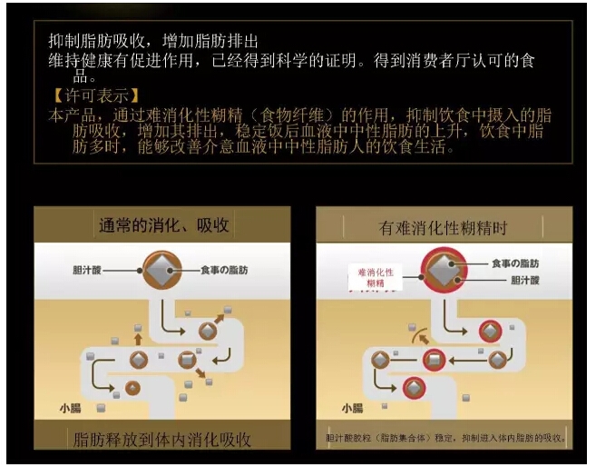 这里涉及到日本产品的功能宣传:早在1995年,日本就开始宣传,糊精是可以整肠的好东西,在96年,开始宣传,糊精可以抑制饭后血糖的吸收,到2011年,有进一步宣传调节饮食中的中性脂肪的,抑制脂肪吸收的。经过20多年的宣传,可以说,糊精的功能在日本人心中早就接受了。