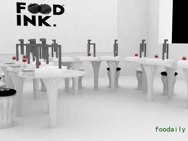 Food Ink 的团队集合了建筑师、艺术家、专业厨师、设计师、工程师和程序员等各个领域的人物。他们使用的食材打印机来自于荷兰一家叫做 byFlow 的公司,这家公司在荷兰也有一家 3D 打印餐厅,去年五月份,还曾在伦敦的 3D 打印展上成功地办了一场 3D 晚宴。而餐厅内的家具则是由设计公司 Mamou-Mani 根据 Dobrzensky 提供的概念设计制作,有那么一点高迪式的魔幻感。