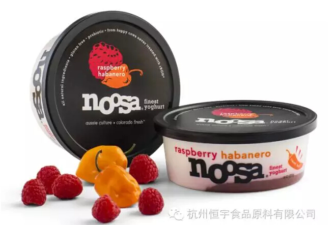 Noosa作为澳大利亚式酸奶的代表品牌,采用全脂酸奶制作,口感奶味浓郁、光滑柔软,最大的卖点是---好吃!其美味的秘诀也非常简单:全脂牛奶+蜂蜜+正真的水果。这个一直以美味著称的酸奶品牌也在2016年1月推出黑莓&塞拉诺辣椒风味酸奶,在科罗拉多山区限量发售。经过这款产品的探路,Noosa在追求刺激风味的道路越走越大胆。2016年7月,“sweet. meet heat.”酸奶系列迎着酷热的夏季火辣上市。