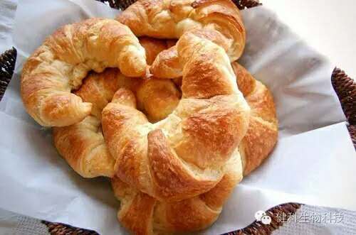 (4)香精的溶剂或载体的选用。香味物质仅占大多数的香精的10-20%,其他部分都是由液态或粉态的载体来填充或稳定体系。有些溶剂或载体会弱化蛋白质的网略结构,对于面包制作时会很明显地影响到面团的干爽性,导致粘手、粘机,虽然面团的流变性会有所改善,但制作出的面包成品则容易外观形状扁踏,内部结构粗糙。而另外有些溶剂或载体则有助于烘烤时的美拉德反应和焦醣化反应,缩短烘烤时间,至制品表皮色泽均匀诱人、富有光泽性。