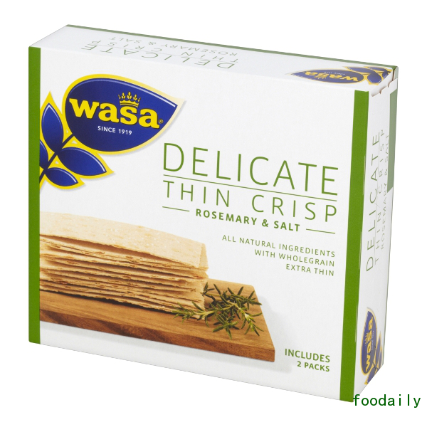 Wasa Thins饼干有两种风味——芝麻&海盐;以及迷迭香&海盐,两款产品在全美的特色饼干区有售,建议零售价2.99美元。