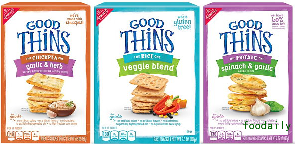 亿滋称,所有Good Thins均不含人工香料、色素,胆固醇和部分氢化油。“产品名称‘Good Thins’表达了对美味和健康配料以及薄酥脆的质感的敬意,” Good Thins市场总监Danielle Brown说。
