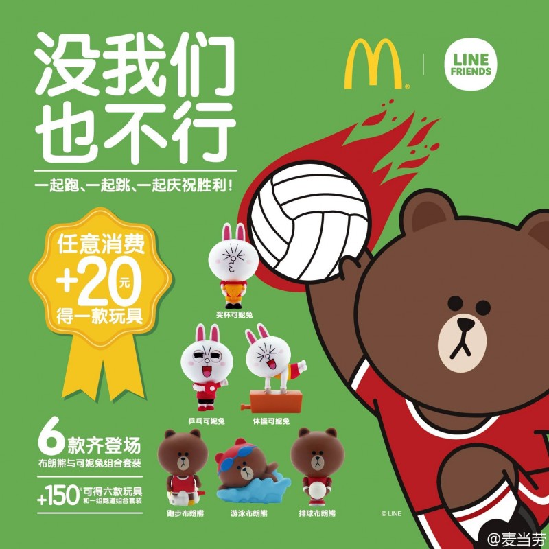 这还是两家公司在中国的第一次牵手——此前麦当劳在新加坡和LINE有过合作来送玩偶——是一次试水,但也足够有话题,正忙着各地开出零售店和咖啡店的LINE得到了更加落地的影响力,而这对于麦当劳来说,还只是奥运季的开始,推出LINE联名玩具的同时麦当劳还介绍了将同期开卖的奥运菜单,把五大洲的美食放到一起来体现奥运精神,包括同步更换的店员服装一起紧扣奥运主题。至于为了LINE玩具专门去到麦当劳点餐的同学们,可以看看新菜单一边尝鲜一边收集玩具吧。