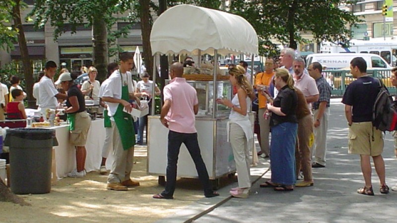 Shake Shack发源于美国纽约。最早,在2000年的时候Shake Shack还只是一个麦迪逊广场公园卖热狗的小推车。虽然规模小到连座位都没办法提供,但凭借优质的食物,Shake Shack征服了从小吃热狗的美国人的味蕾,排起长龙成为了常有的事情。这对于大多数生意人来说,正是扩展的好时机。不过,Shake Shack依旧按部就班的发展着,小车换大车,再慢慢开出第一家、第二家……在2010年前,Shake Shack在大本营纽约也仅有三家店,以至于排队成为了常态。