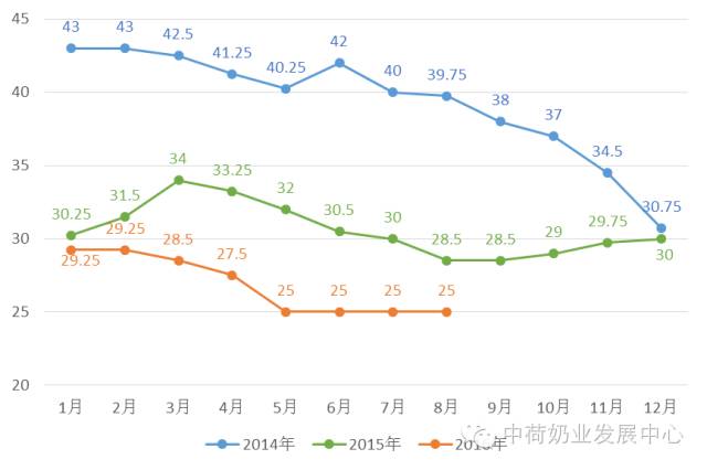 荷兰生鲜乳收购价格变化[1]