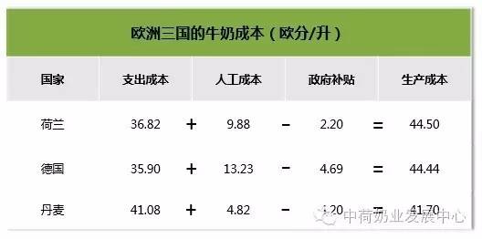 好吧,如果让知道真相的欧洲奶农听到,他们肯定被你们的天真气哭了。列举几个欧洲主要国家的原料奶生产成本给你们看看。