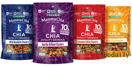 Hoffman于2009年在果汁饮料,如木槿黑莓味和柠檬草莓味等产品中推出了富含天然芡欧鼠尾草的品种。最近,该公司又将其应用于水果蔬菜包、格兰诺拉燕麦卷和营养棒中,这些产品都富含纤维素、蛋白质和omega-3脂肪酸。所有的Mamma Chia产品都是有机、无谷蛋白和非转基因的。