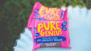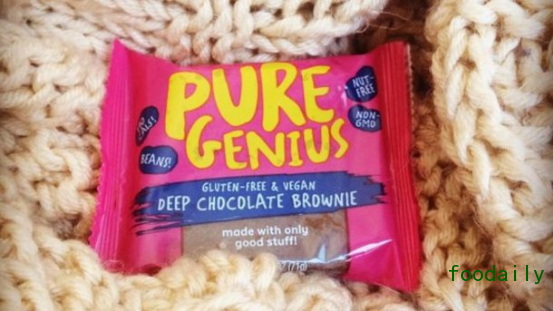 Pure Genius是一款湿软,令人垂涎欲滴的,可口的布朗尼小蛋糕。它的配料中包含了40%的鹰嘴豆,亚麻籽和燕麦,热量只有普通布朗尼蛋糕的一半,富含大量的纤维和蛋白质。
