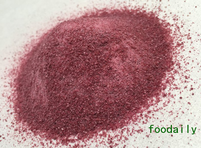 果汁粉采用温和的脱水工艺制成,去除了果汁中的所有水分,保留了果汁中天然健康的成分。产品具有低水分活度及良好的流动性、可溶性,同时保留了原果汁独特的风味和绚丽的紫色。可以应用在糖果,乳制品,焙烤食品和零食等多个品类中,为其增添诱人独特的产品特性。