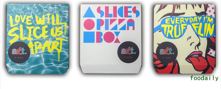 比如为美国披萨品牌 ALT. 设计的披萨盒。