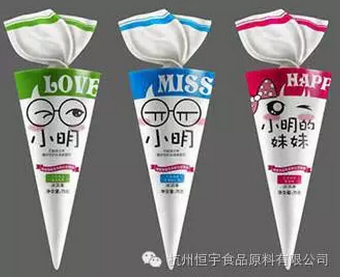 通俗的名称、简洁萌萌的包装图案、网络销售渠道等等这一切使得“小明”一出道就吸引了广大年轻消费者的关注。把“卖萌”风从饮料带到了冷饮界。“可能是今年最好吃的冰淇淋蛋筒”,优异的品质和市场定位推广使得此系列产品成了近两年一道靓丽的风景线。