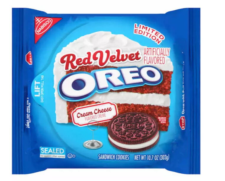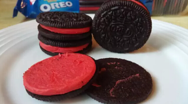 这几年奥利奥推出了不少新口味。去年推出了一款红丝绒蛋糕口味,饼干换成了红丝绒蛋糕口味,夹心则换成了奶油芝士味,而红丝绒蛋糕是这几年相当流行的口味,蛋糕层为红色,再加上白色奶油糖霜。今年年初则是推出了一款肉桂面包味,同样是换掉了饼干,夹心变成奶油霜,奥利奥希望大家觉得这吃起来像真正的肉桂面包。