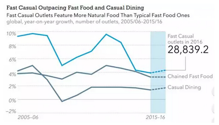 舒食(fast casual)是将传统餐饮的健康和快餐的快捷结合在一起的新概念,该行业的增速要高于快餐行业