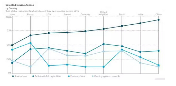 (全球各个国家消费者拥有各类电子设备的人数比例)