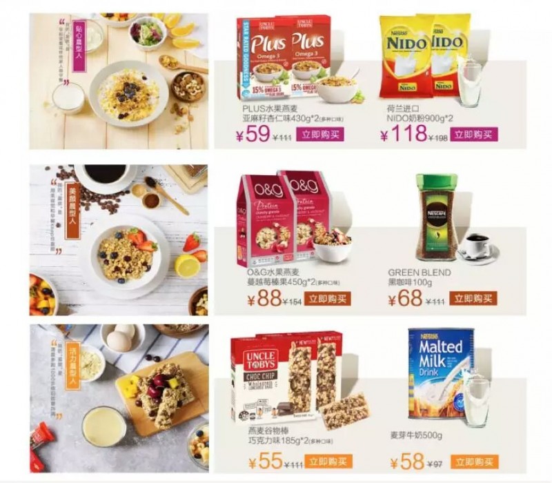 最近,小编从雀巢在天猫国际搭建的海外官方旗舰店的页面上看到,从8月底开始这家全球最大的食品生产商就忙于上线一个主打早餐的进口食品饮料页面,并冠以“晨型人在行动”(注:指习惯早起的人)字样。