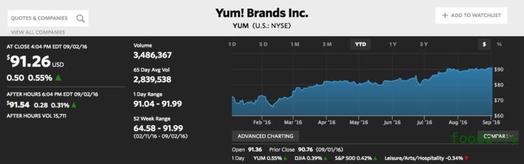 拆分中国区业务的消息传出后,百胜集团的股价一直在上涨