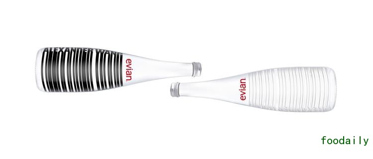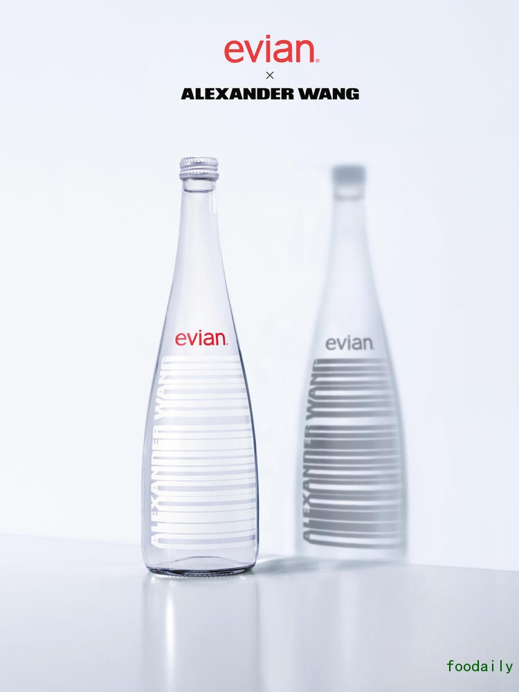 2015 年,依云和 Alexander Wang 合作,瓶身印有 Alexander Wang Logo 转换的条形码,有一黑一白两款。