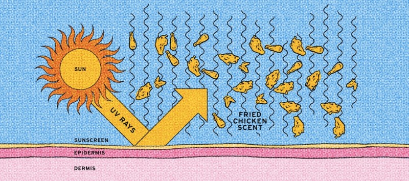 而周一,肯德基又往护理界迈了一大步,在推出了一款防晒霜。和市面上所售的其它防晒霜比起来,这款防晒霜轻薄清透,近乎乳液的质地,而且SPF值也有30,可以应付日常的防晒需求了。唯一的区别在于,一般的防晒霜的味道像化妆水,带有脂粉的香气,而肯德基的这款防晒霜还是炸鸡味。